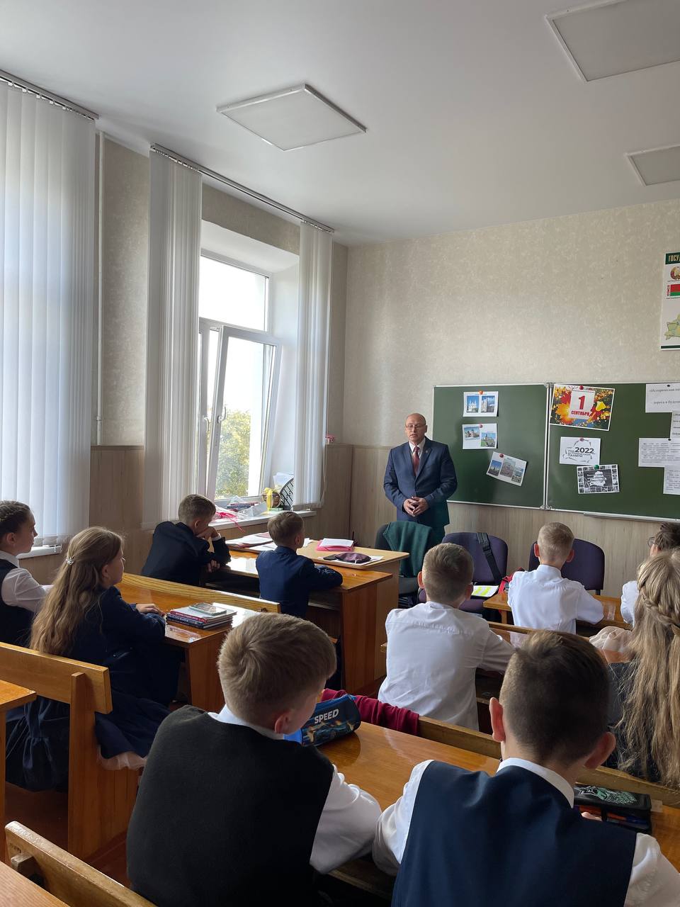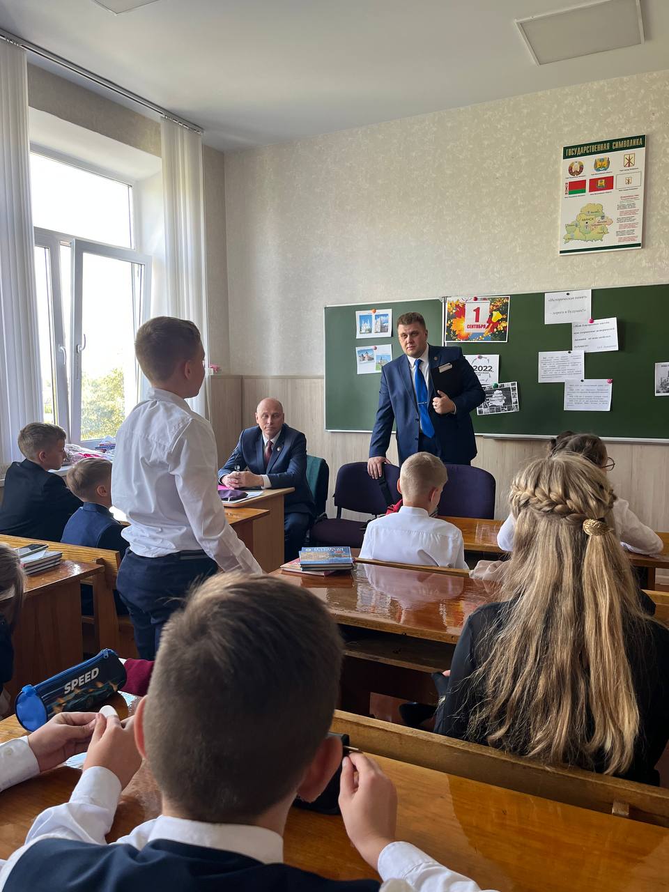 Заведующий юридической консультации Иван Смирнов поздравил учеников с праздником День знаний, рассказал об истории адвокатуры, о значении института адвокатуры сегодня.